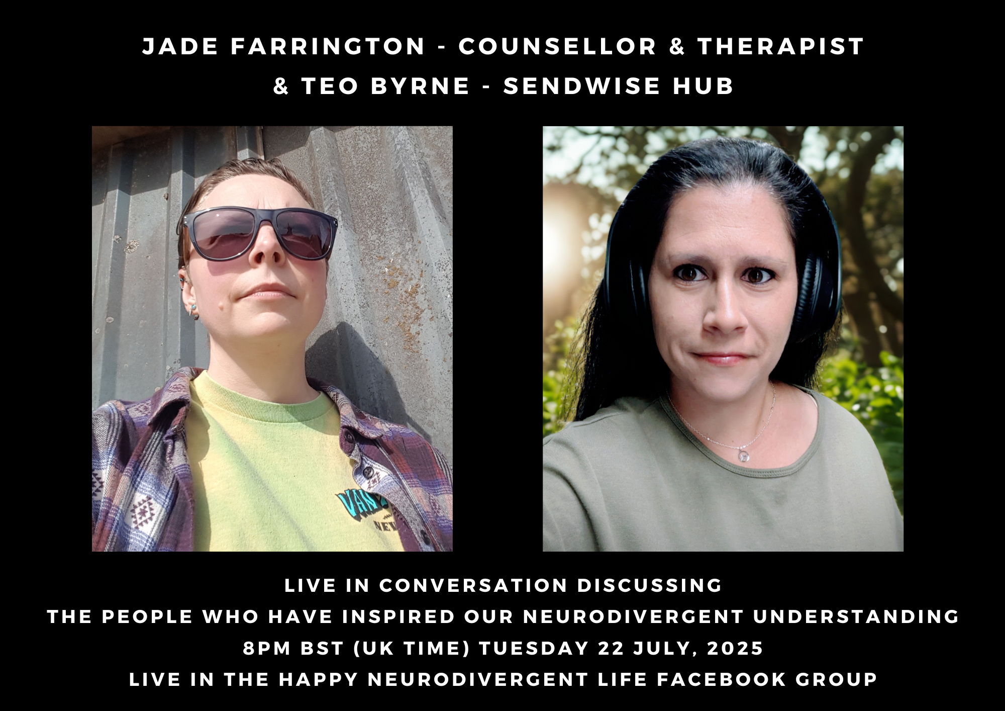 Free live event: Teo Byrne of SENDwise Hub & Jade Farrington in Conversation: The People Who Have Inspired Our Neurodivergent Understanding